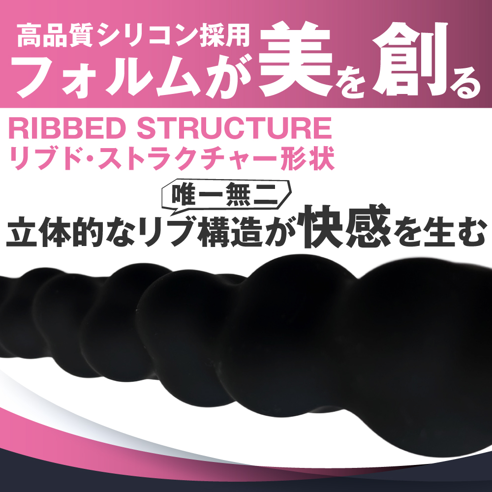 ほぐした後は一気に引き抜いたりピストンすることで、リブ構造の連続快感を楽しめます。