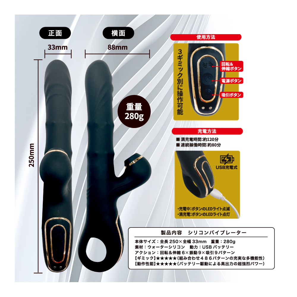 【機能】6パターン回転&伸縮、9パターン振動、9パターン吸引