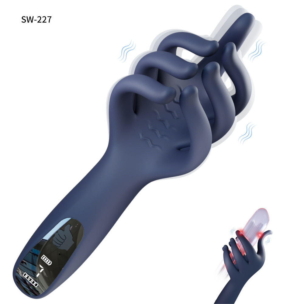 7本すべてが同時に振動しながら密着し、波状のしわを施した手のひら部分が摩擦による快感を高めます。