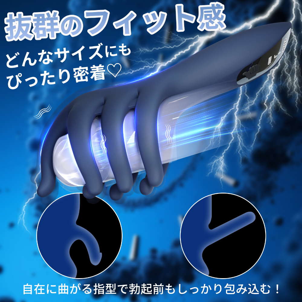 独特な7本指デザインで、6本の指がペニスを包み込み、上部の1本が亀頭をしっかり刺激。