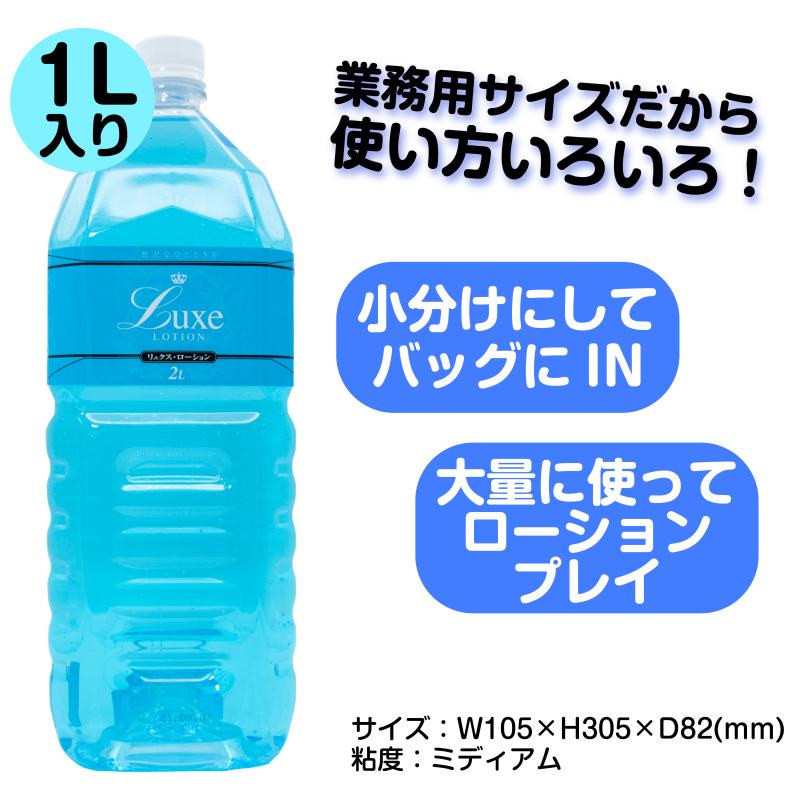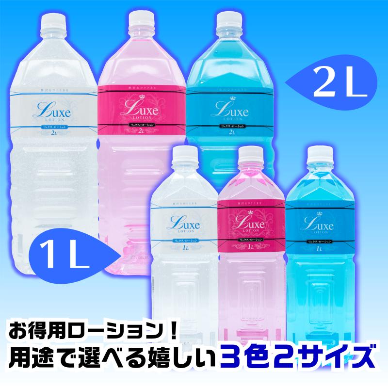 ローションをたっぷり使いたい方にオススメ!お買い得な1Lたっぷりサイズ!お好みに合わせて3色からお選びいただけます。たっぷりヌルヌルプレイをお楽しみいただけます。粘度:ディアム
