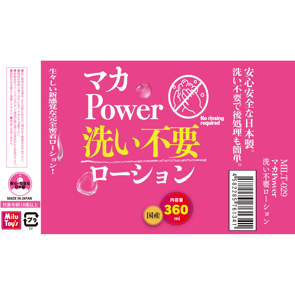 「マカPOWER」から洗い不要ローションが登場!サッと拭き取れるので、使用後の後片付けがとっても簡単。従来のプレミアムなサラサラ粘度