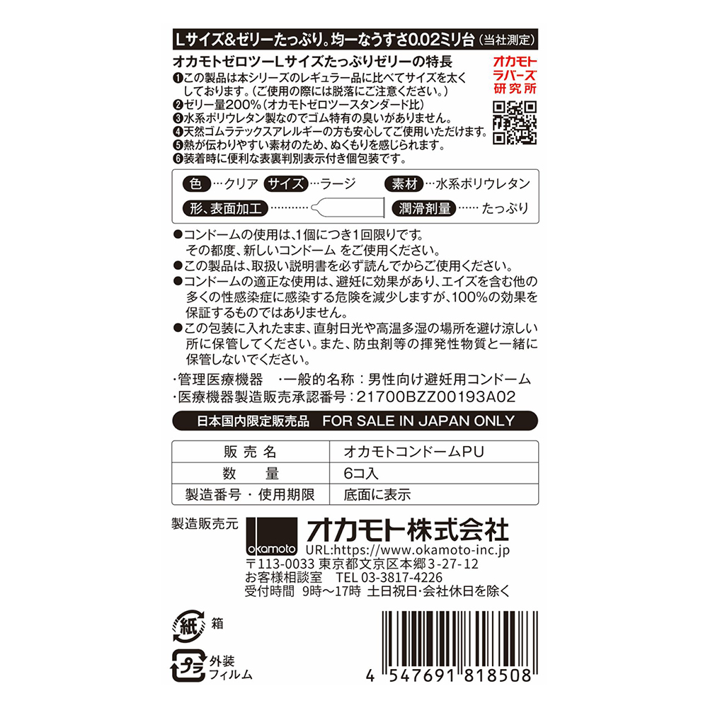 “ゼリー量200%”スムーズな挿入感を目指した、女性にやさしい「オカモトゼロツー」!