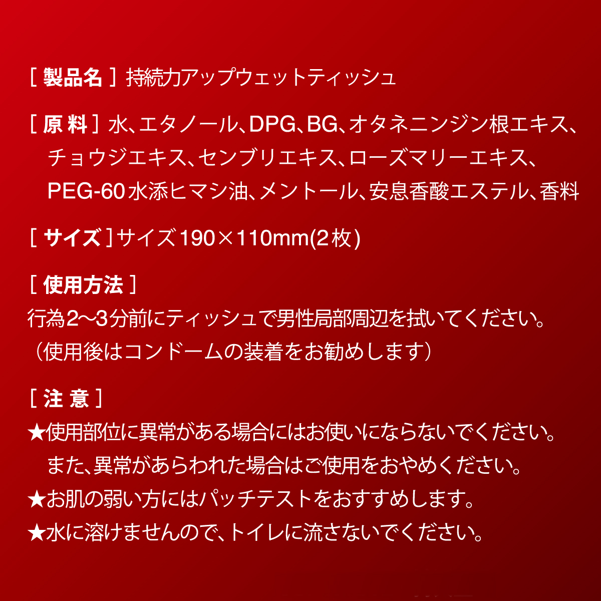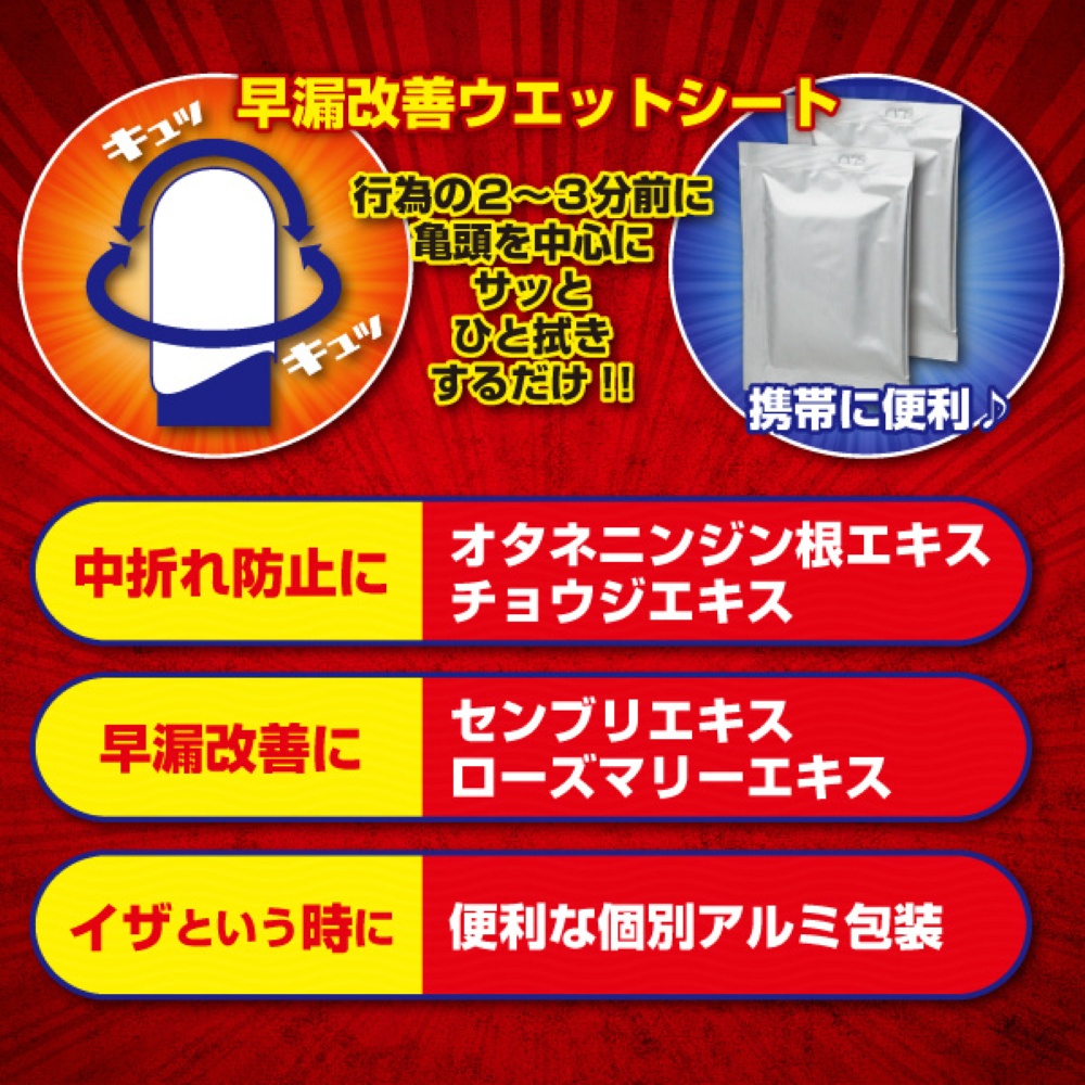 行為の2〜3分前に亀頭を中心に、サッとひと拭きするだけの手軽さ。