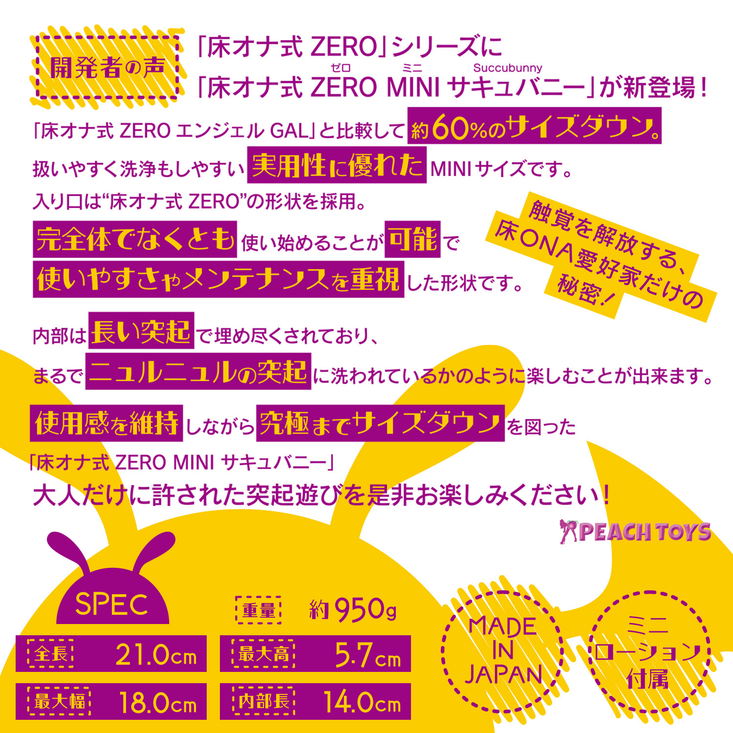使用感を維持しながら究極までサイズダウンを図った、「床オナ式ZERO MINI サキュバニー」。