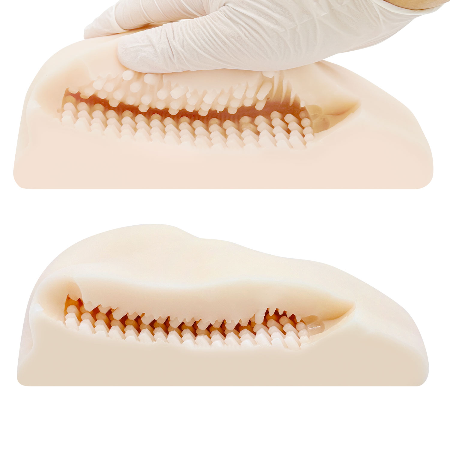 また、内部上下にある無数の突起がすべて入口に向けた角度で配置されていますので、プレイ時にはしっかりとした刺激を感じやすい設計になっています。