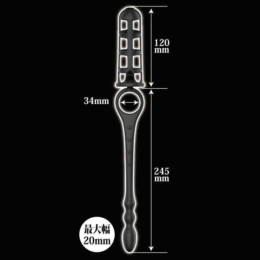 【本体サイズ】サック全長:120mm リング部分:内径34Φmm アナルプラグ:全長245mm 最大幅20mm