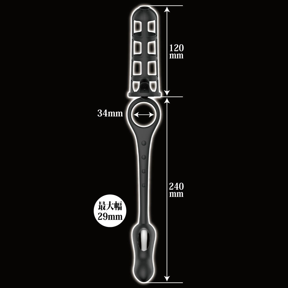 【本体サイズ】サック全長:120mm リング部分:内径34Φmm アナルプラグ:全長240mm 最大幅29mm