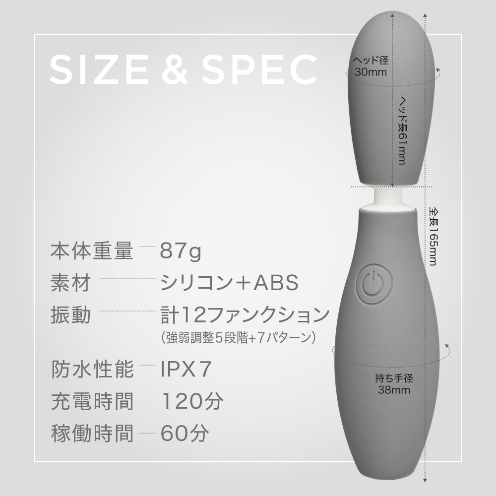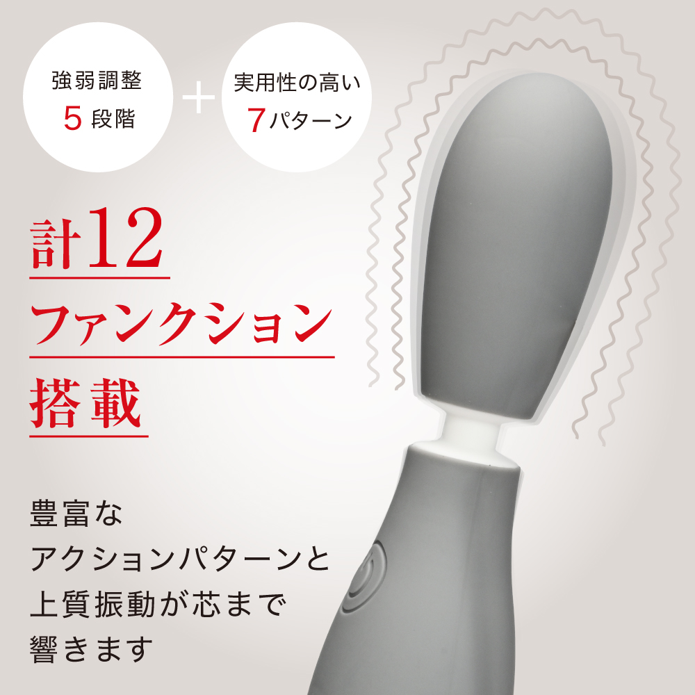 精密に組み合わせたパーツと上質なモーターにより、振動音がわずか30-55dBの静音設計なのに芯まで響くバイブは細かい調節が可能な5段階強弱調整と実用性の高い7パターン振動の計12ファンクション搭載。
