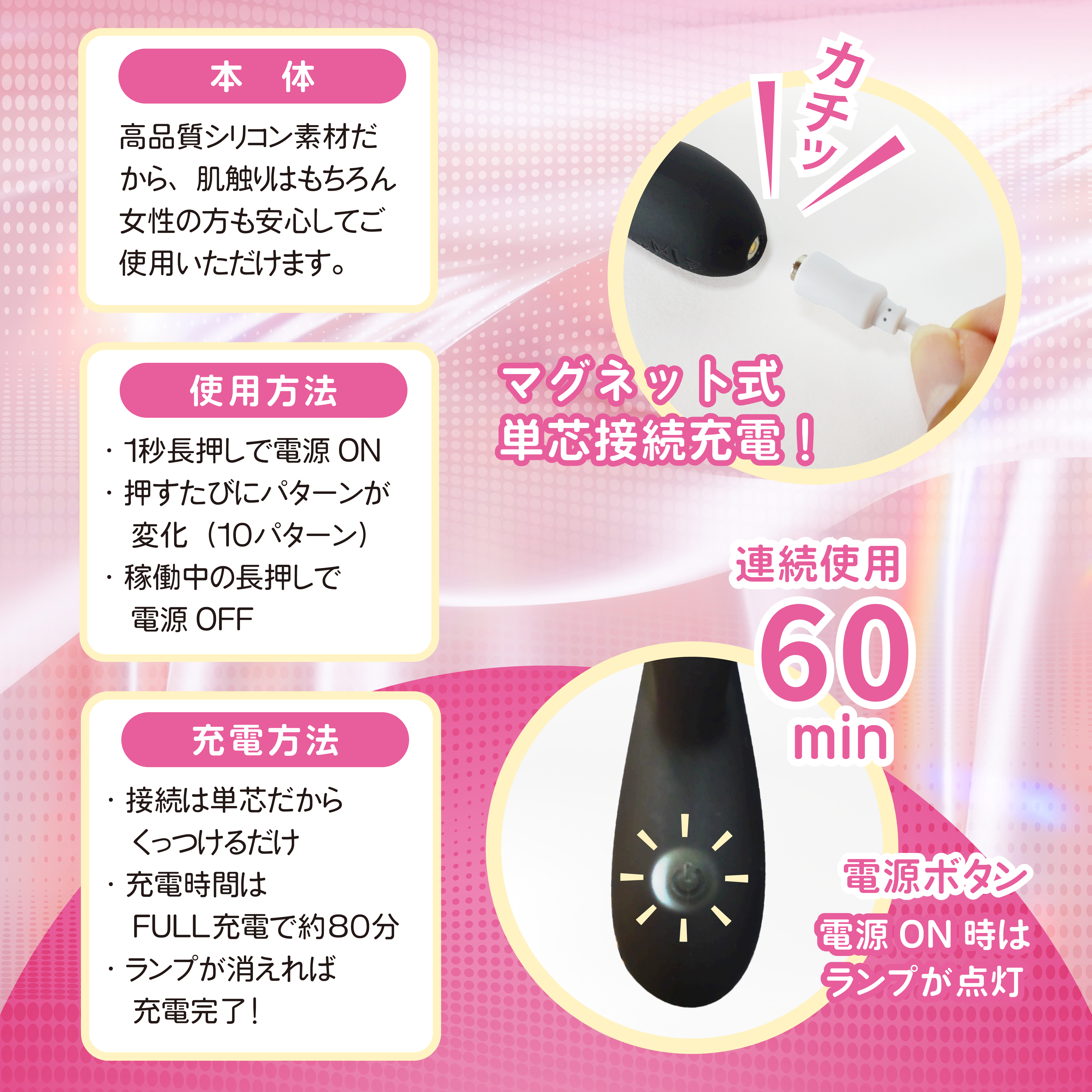 ボタン一つの簡単操作で、10パターンの強振動をお楽しみいただけます。