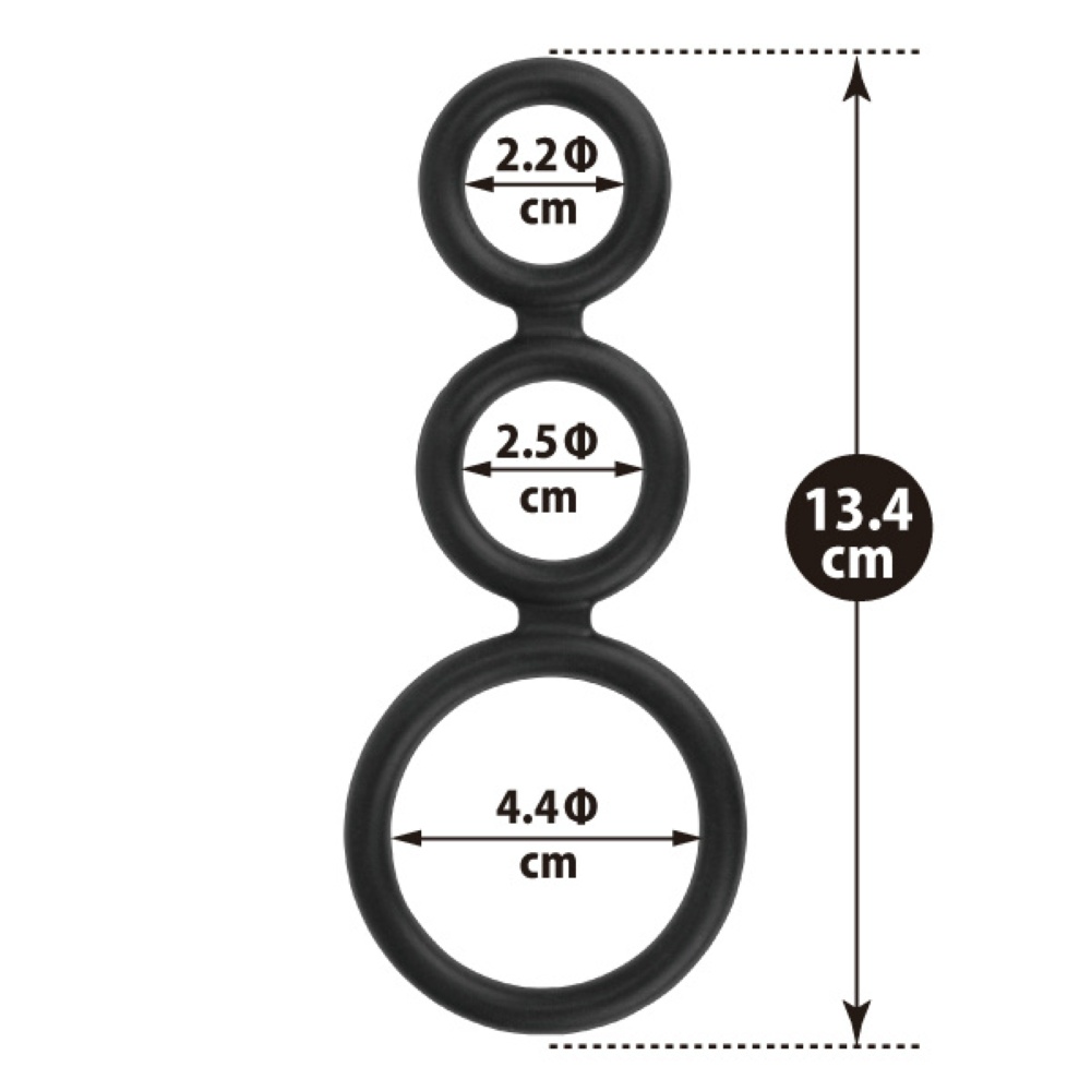 サオと袋を効果的に締付け、勃起力や持続力の向上をサポートする強力3連リング!!