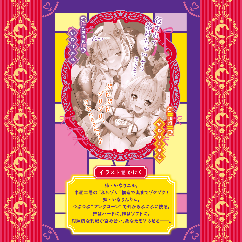妖艶な狐姉妹が禁断コラボで、かつてない【半面二重責め】!マングコーン"のツブから成る揉み感と、"裏すじ妖技ふわゾリの舞"のゾリゾリ刺激――をドッキングさせた前代未聞の快楽仕様!