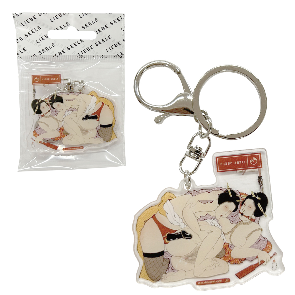 淫靡な浮世絵デザインをアレンジした、アクリル素材のキーホルダーです。ちょっとしたギフトや、お土産にも最適