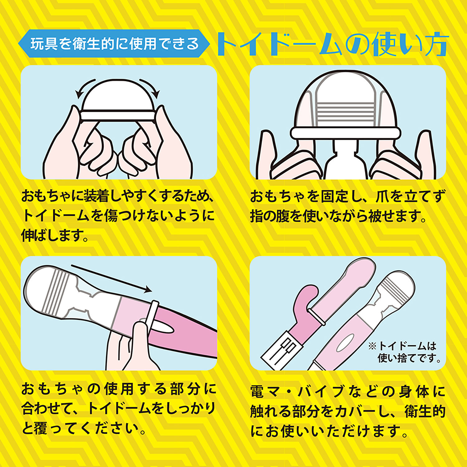 バイブやローターに被せるだけで、雑菌の侵入を防ぎ安心して遊べます。
