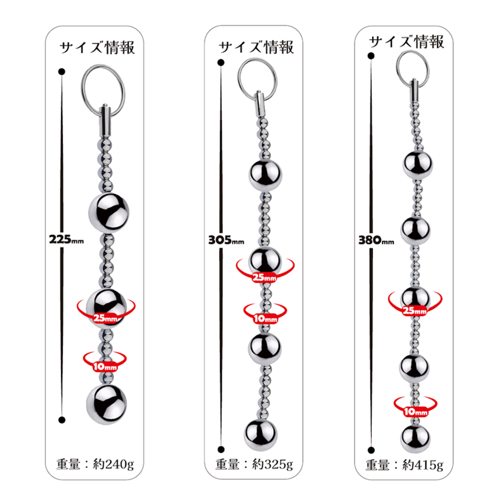 フルメタル製の重量感、高級感。球体の重みが刺激を与え、抜く瞬間には支配の震えが全身を駆け抜ける!
