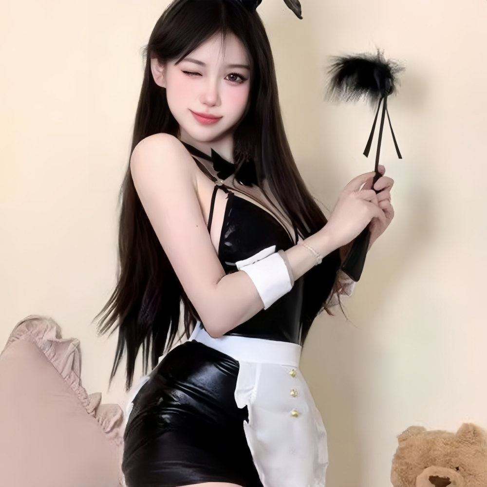挑発的なセクシーさと洗練されたデザインで、男心を惑わせる魅惑のボンデージ風メイドバニーコスチューム!