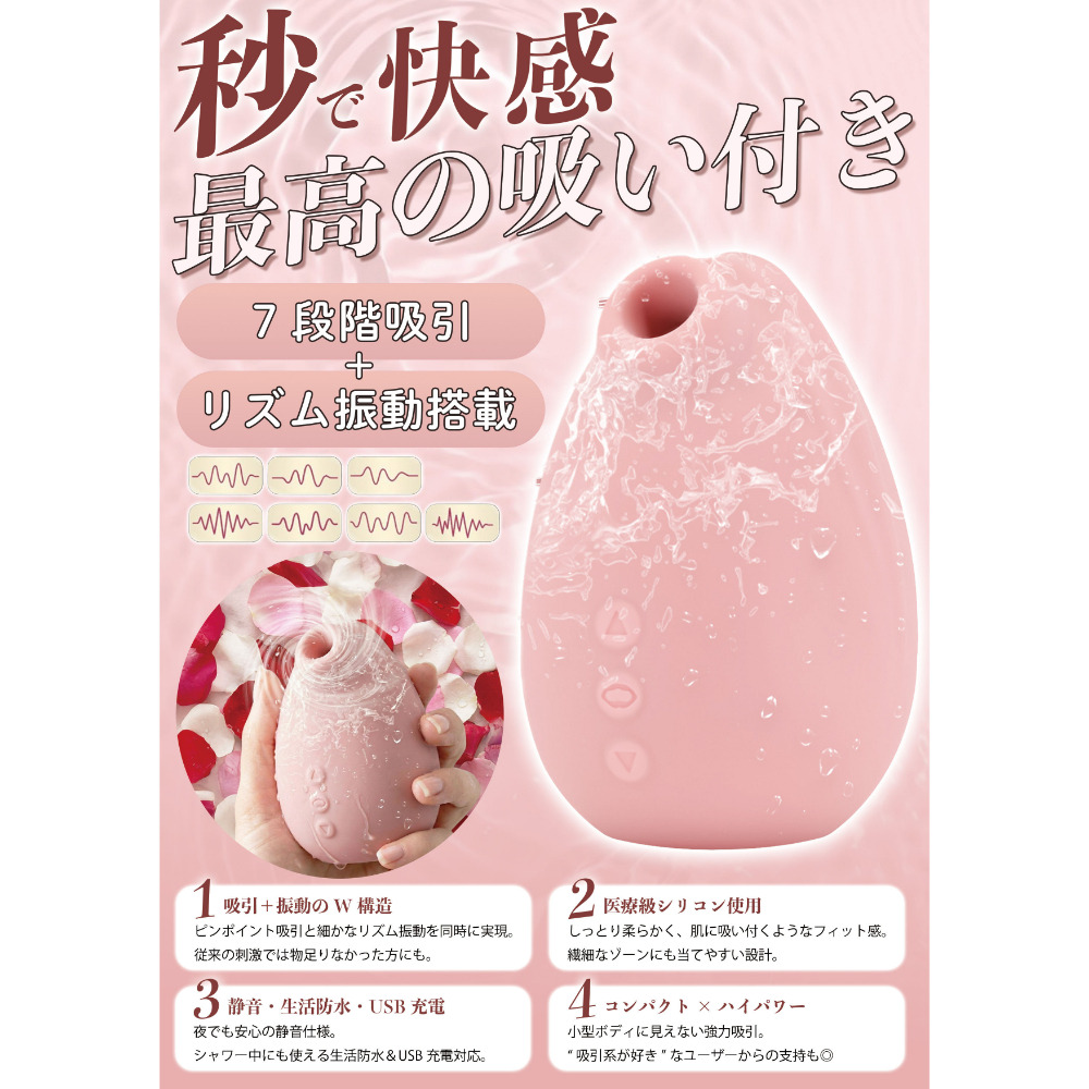 7段階の吸引&リズム振動を搭載し、軽いタッチから激しいリズムまで自在に切替できます。