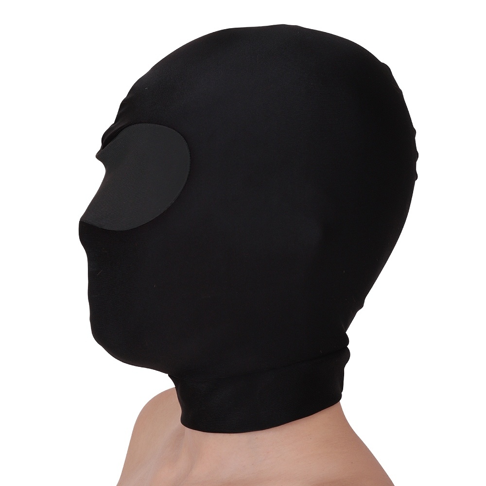 二重生地により視界は完全に絶たれ、恐怖心と羞恥心を煽るSM用フルフェイスマスク。