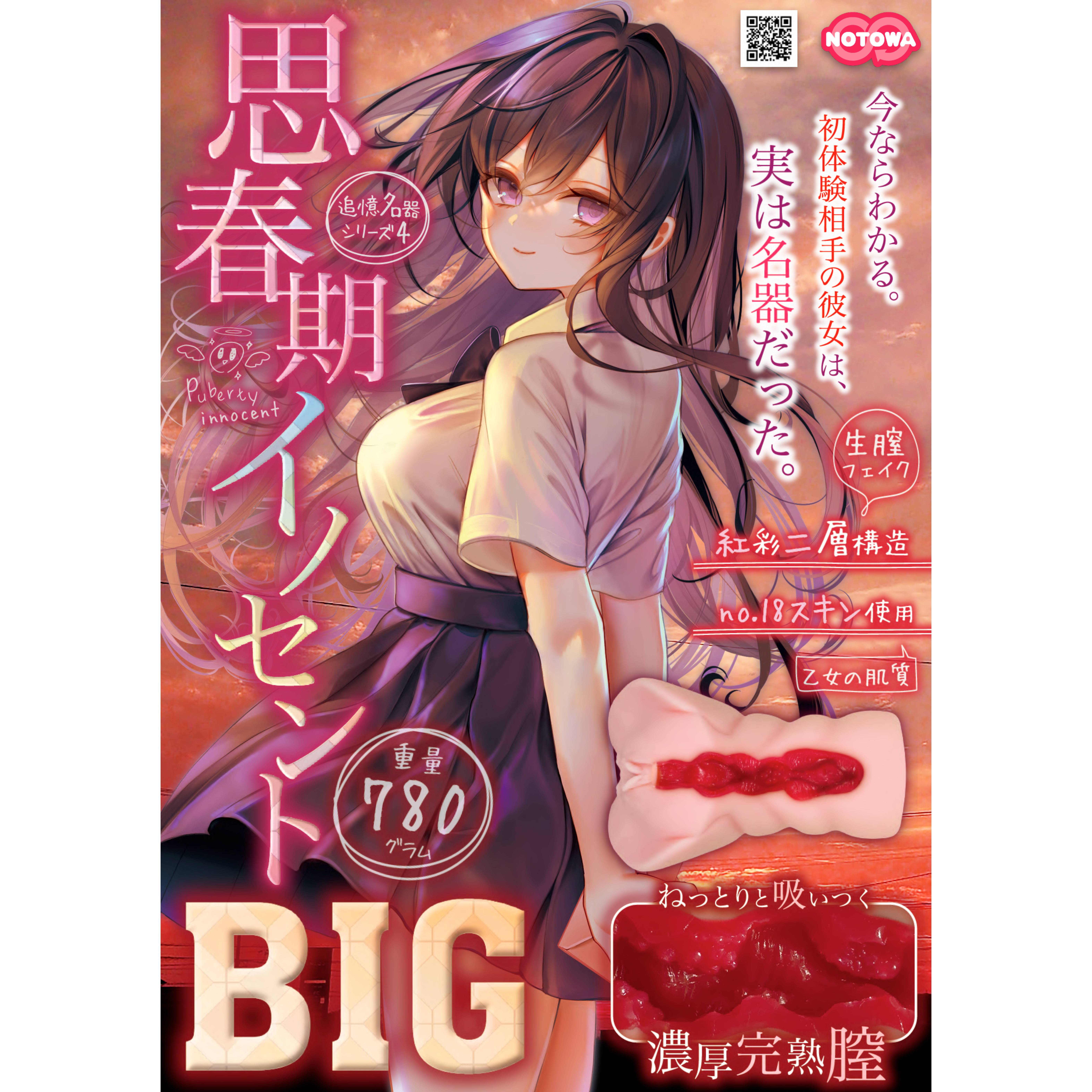 今ならわかる。初体験相手の彼女は、実は名器だった!人気作「思春期イノセント」の大型バージョンです。前作同様の「生膣感触ギミック」を、780gの肉厚ボディで贅沢に内包。まるで「本物」のような臨場感ある感触で、「追憶の名器」をお愉しみいただけます