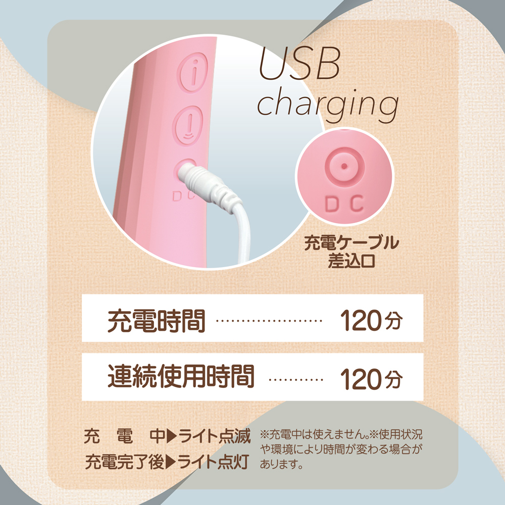 【駆動】USB充電式(充電時間:約120分、連続使用時間:約120分)