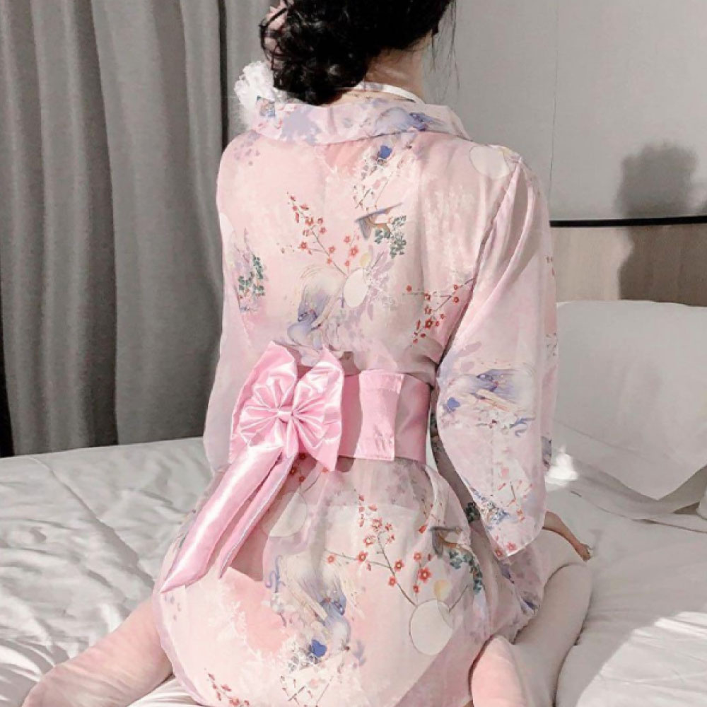 大きなリボン帯がガーリーな雰囲気を演出しつつ、ショート丈で大胆な色気もプラス。