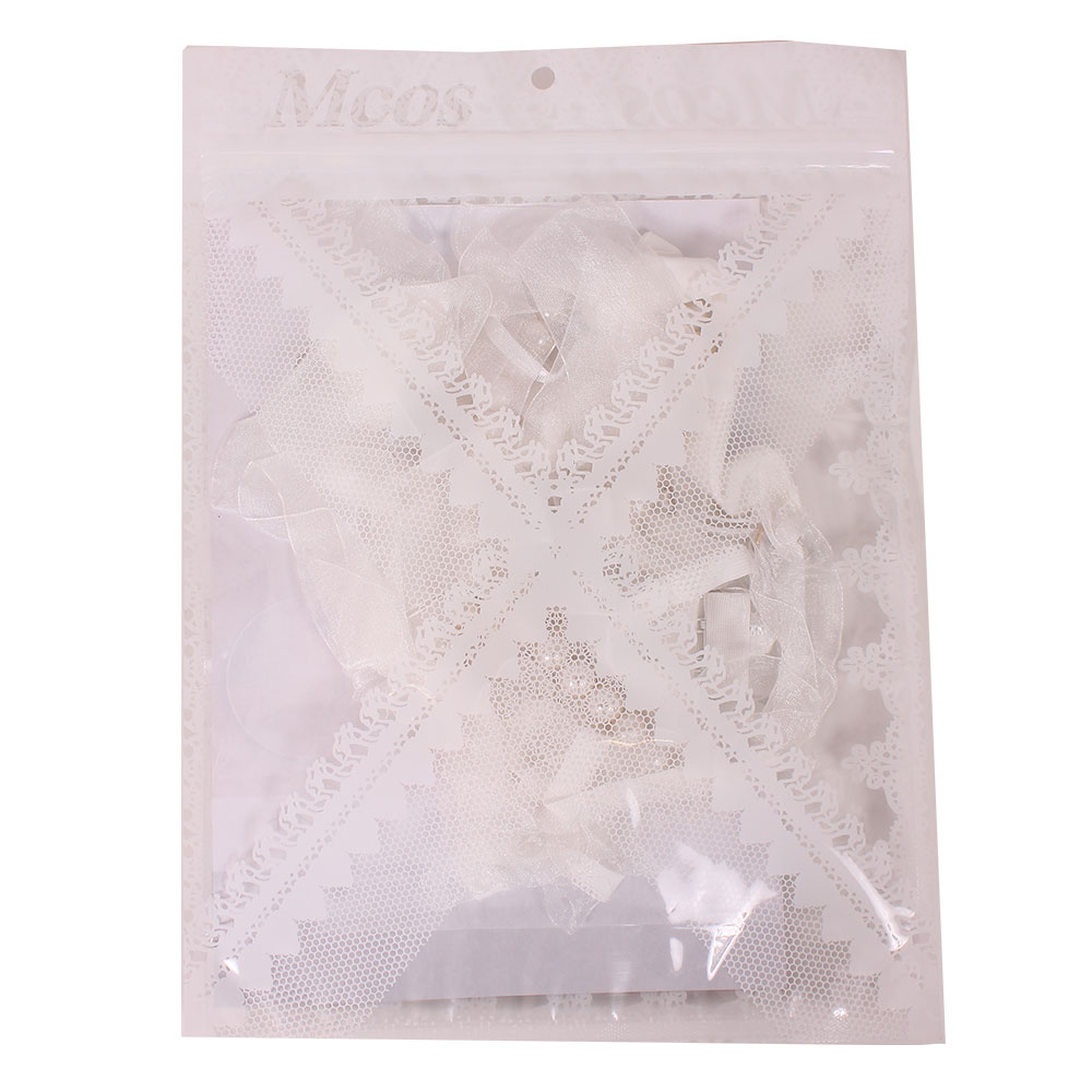 パールとレースのリボンをあしらい、まるでプリンセスのようなロマンティックなムードを演出します。