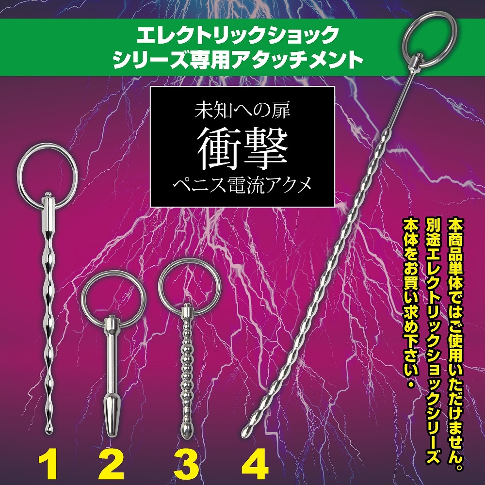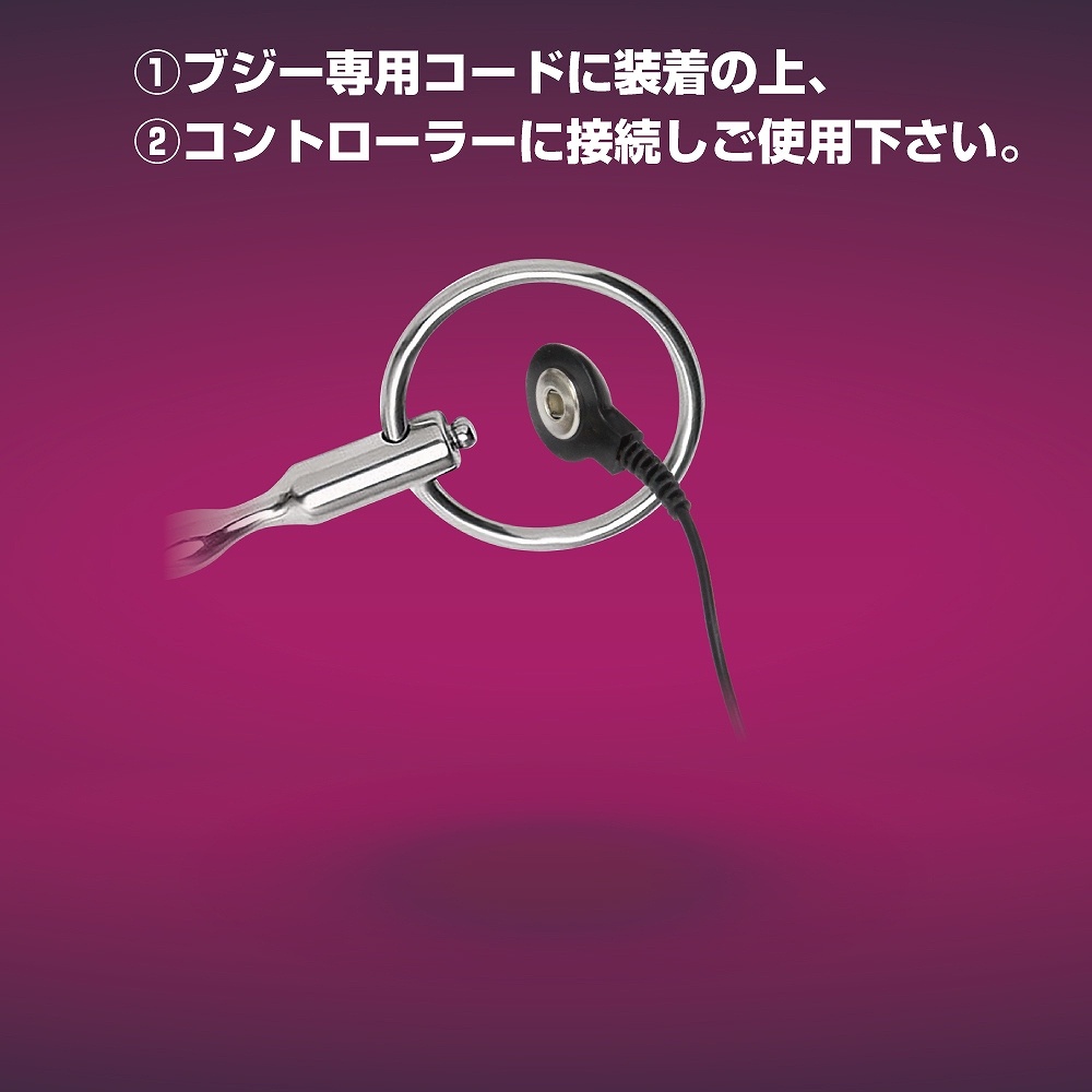 別売りの「エレクトリックショック コックループ&メタルブジー」に接続して好みのサイズで楽しめる専用ブジーアタッチメント。