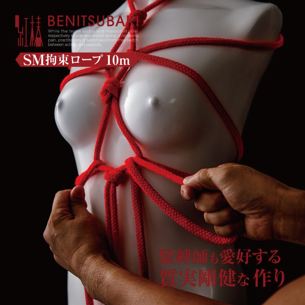 知る人ぞ知る伝説のSM女王・紅椿。SMを知り尽くした彼女がプロデュースし、誕生したシリーズに新作の登場です。このSM拘束ロープは簡単、かつ安全に拘束プレイが楽しめるロープです。程よい柔らかさと弾力感があり、しっかりと肌に馴染む様にできています