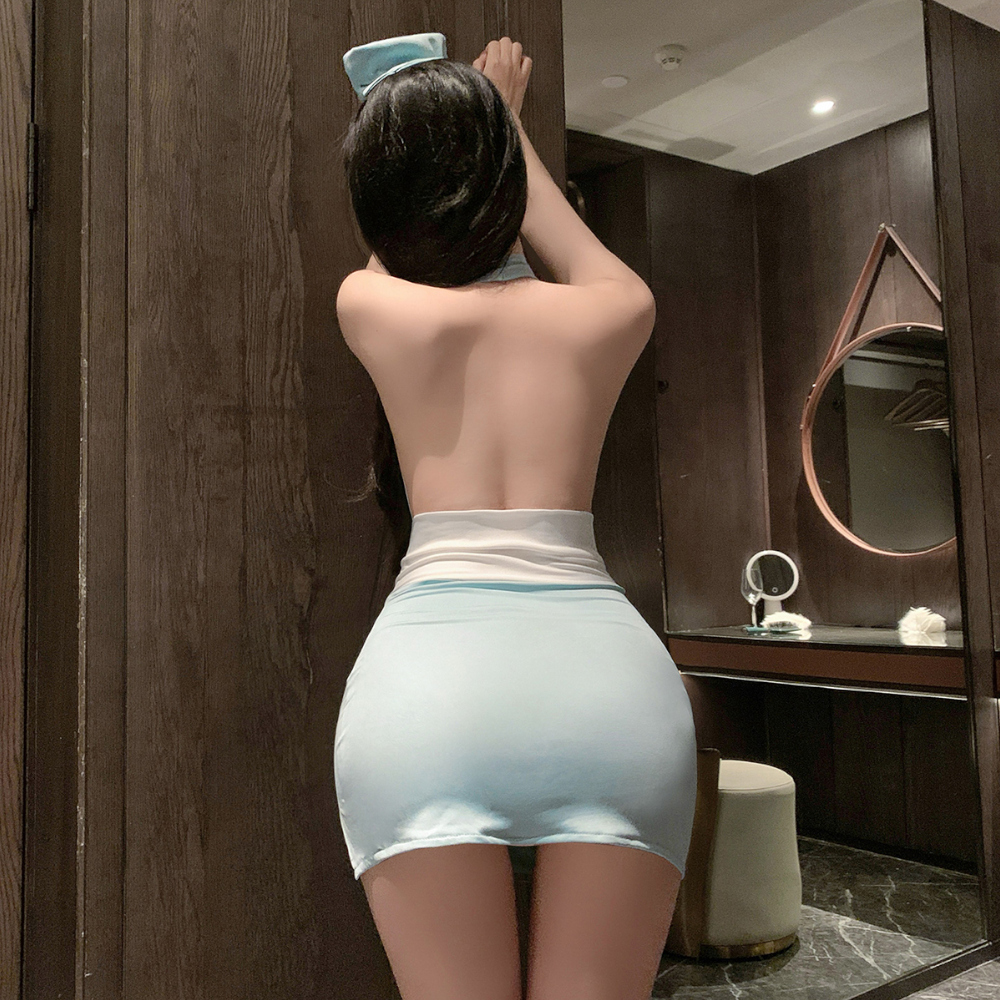 深く開いたVラインからは胸の谷間、ホルターネックで背中は大胆に。