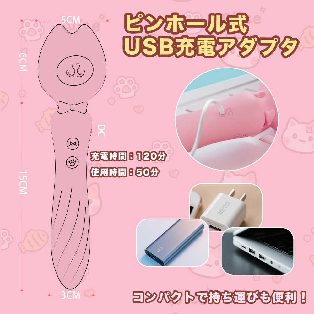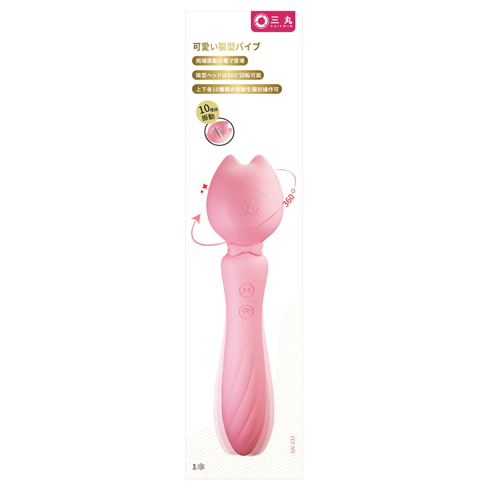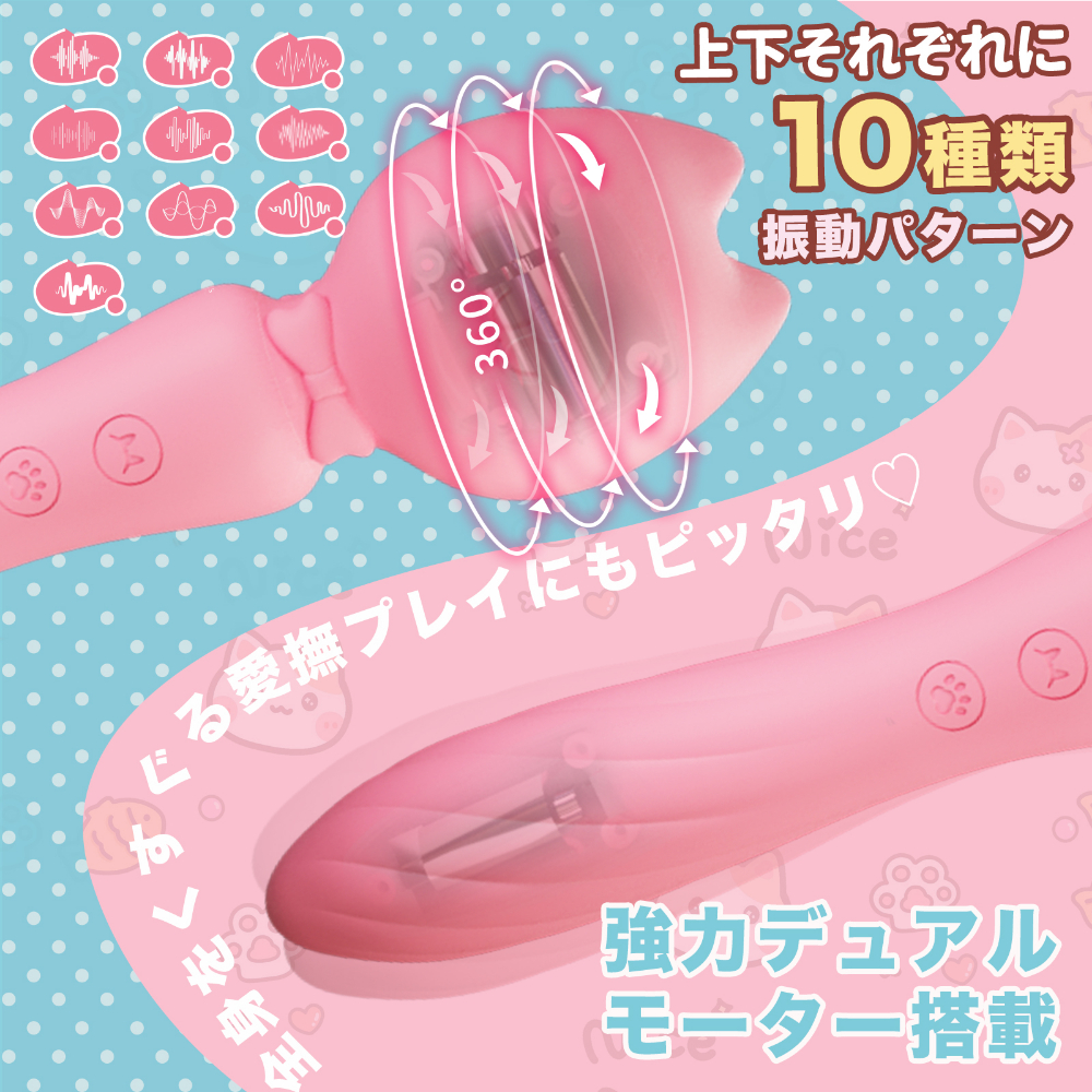 ネコ耳型の先端は360°回転し、全身をくすぐるような愛撫プレイにもぴったりです。