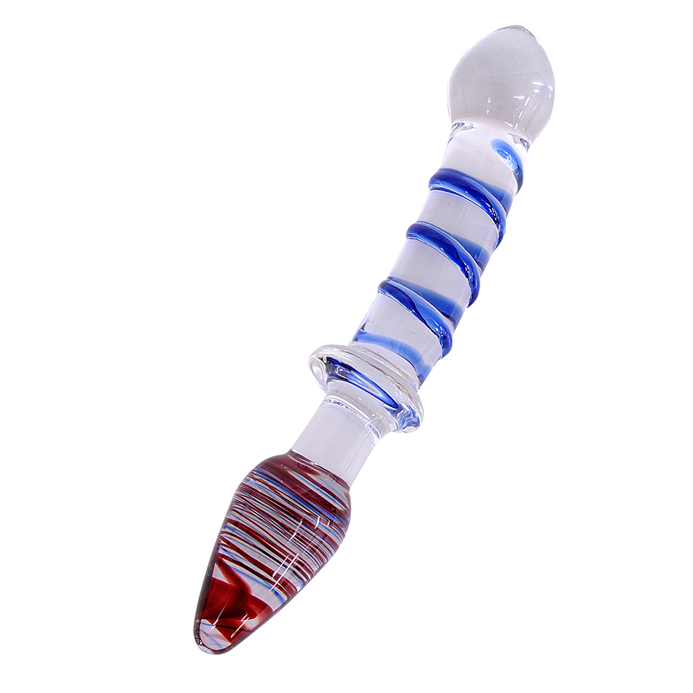 前と後ろを刺激できる双頭タイプのガラス製ディルドです。