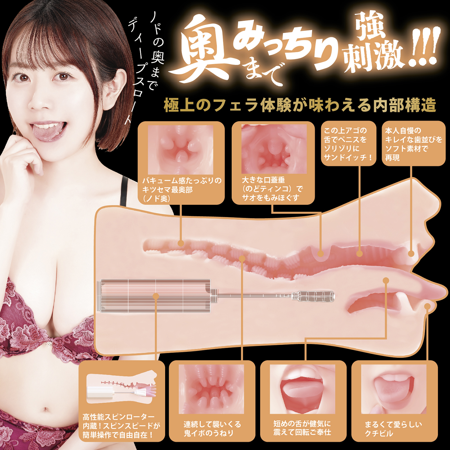 小柄な白肌AV女優【水卜さくら】の小悪魔フェイスを、最新3Dスキャン技術で完全再現!電動ローリングとバイブレーションで、何度も射精させられる無限エクスタシー!内部もリアルな口腔構造いっぱいで、本物そっくりな舌や歯並びが気持ち良い!