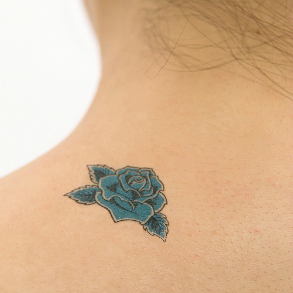 柄:青薔薇。祭り化粧はお肌に直接つける、ちょっと色っぽい新しいファッションアイテム。特殊な素材を使用しておりますので、皮膚の動きと一緒に伸び縮みします。入浴したり、海やプールに入っても3日は取れません