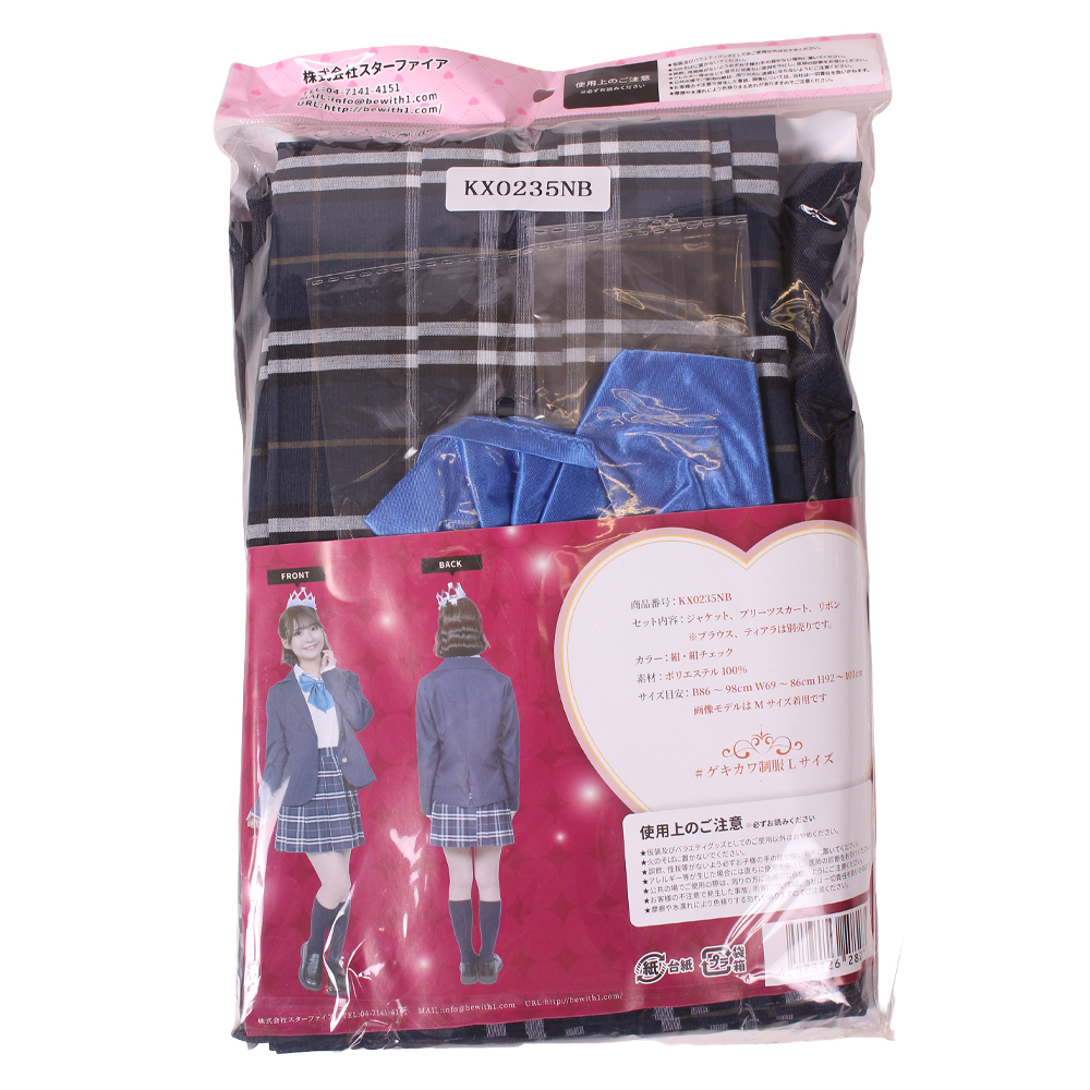 【Lサイズ】適応サイズ:B90~98cm W76~86cm H98~103cm ブレザー着丈61cm 身幅52cm 袖丈63cm スカート丈45cm ウエスト76cm