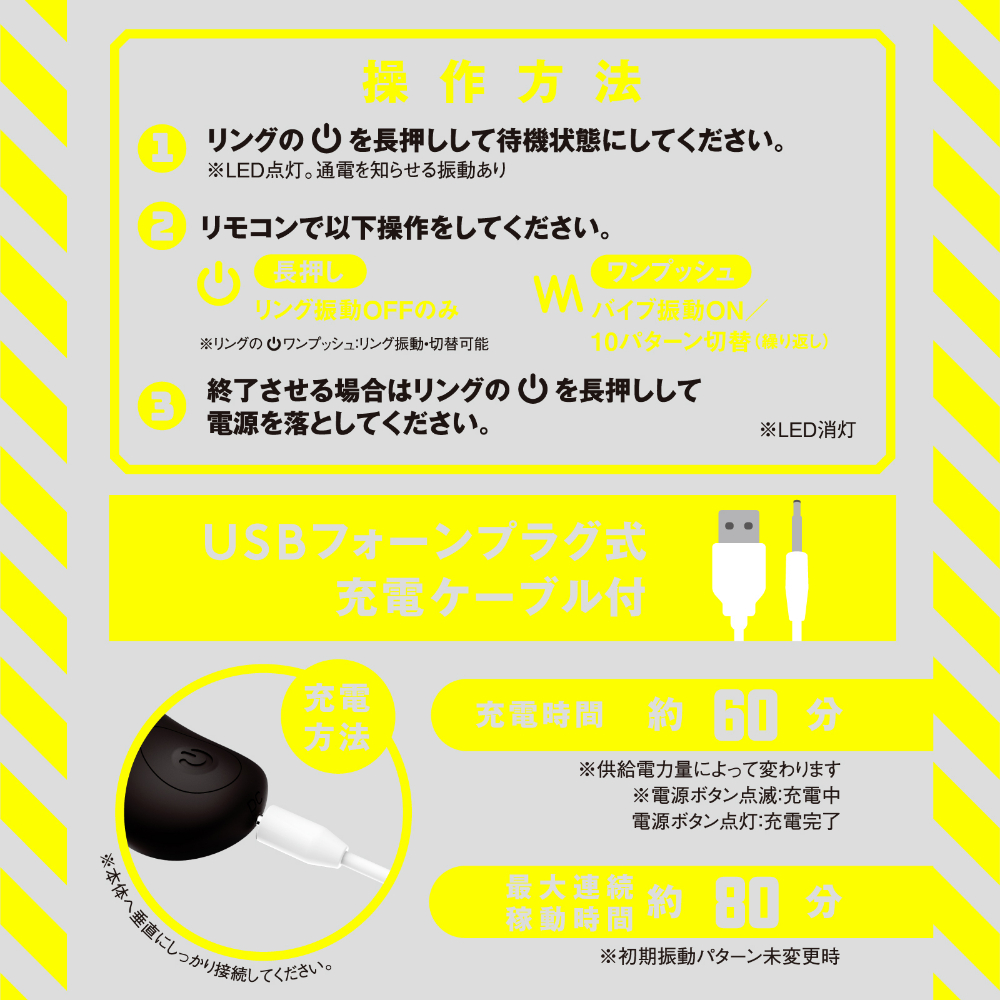 ※本体:最大連続可動時間約80分(初期振動パターン未変更時)_IPX6等級_10パターン振動