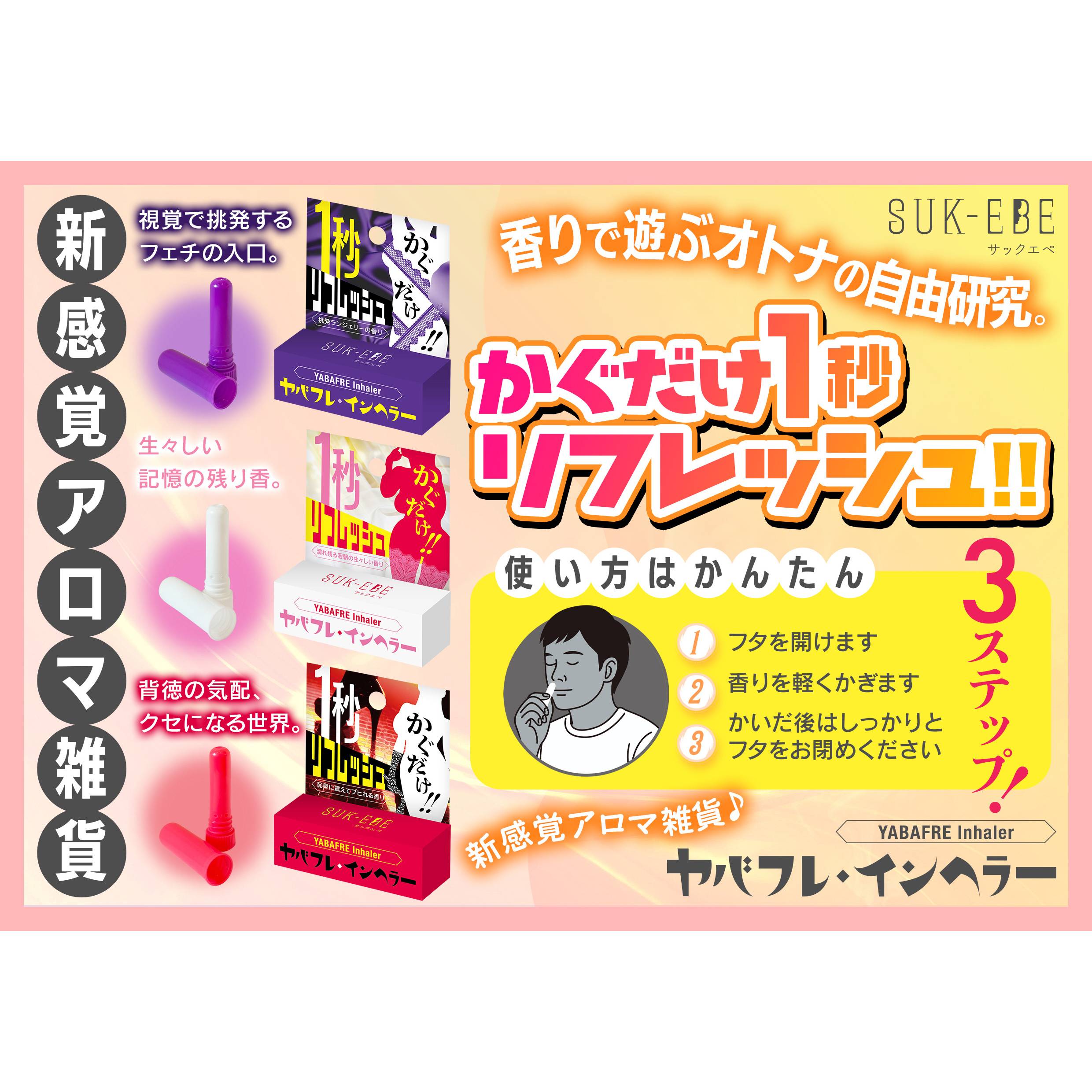 「ヤバフレ・インヘラー」は、かぐだけ1秒で気分を切り替えるアロマ雑貨です。