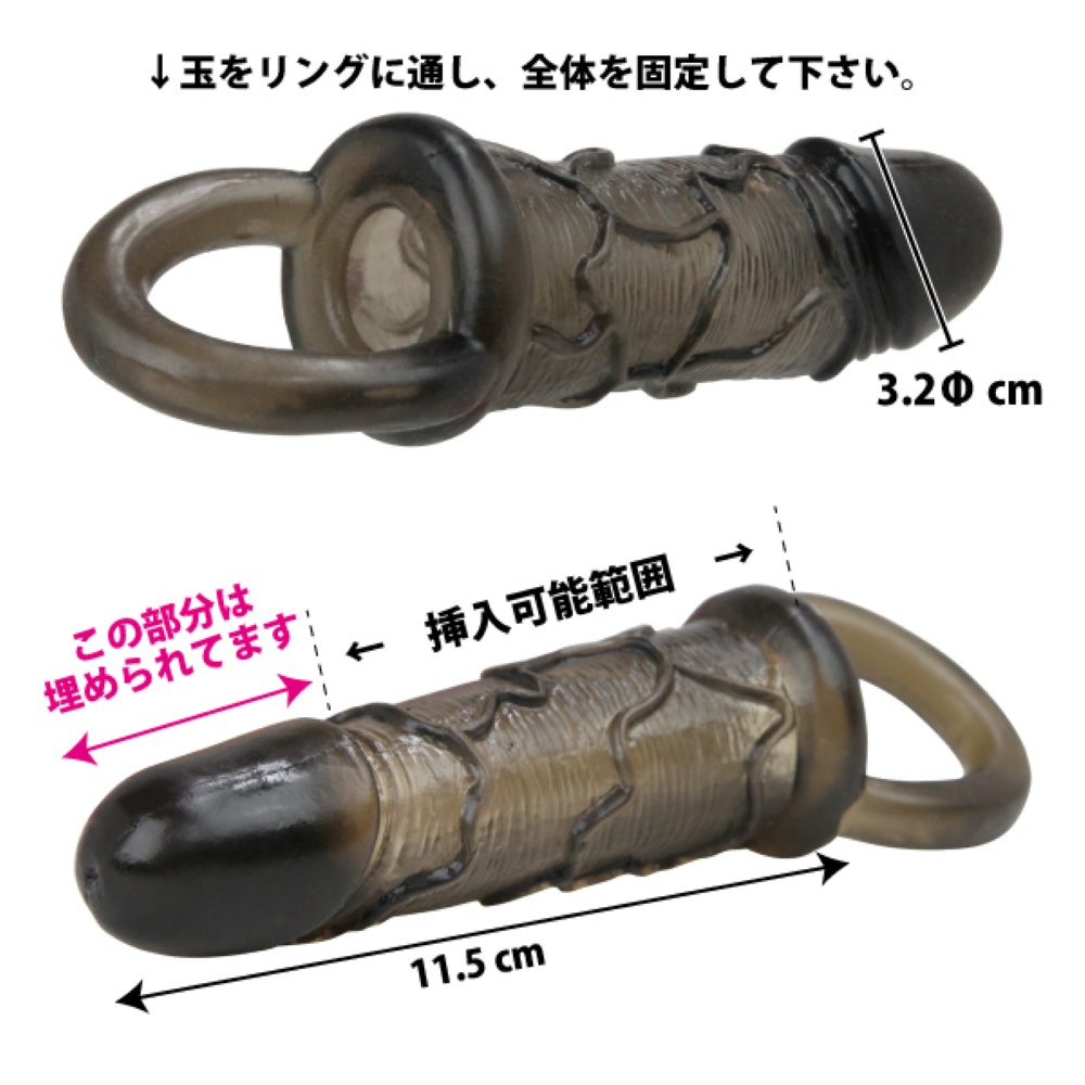 匂いやベタつきがない、100%純シリコンを使用したペニス増大サックです。 亀頭部分は樹脂がギュウギュウに詰まっています。 装着すればSサイズで約3センチ、Lサイズで約4センチもペニスが増大! しかもLサイズは反り返った形。